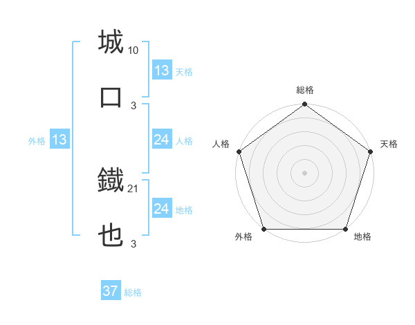 城口 鐡也さんを姓名の画数から五運を鑑定