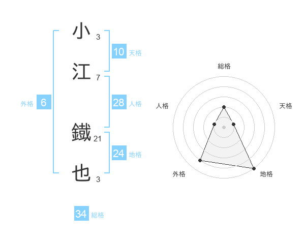 小江 鐡也さんの総格は34画の2点!