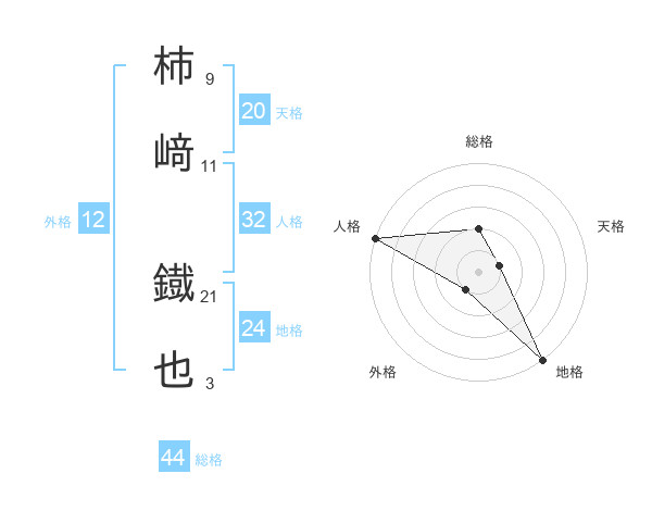 柿﨑 鐡也さんの総格は44画の2点!