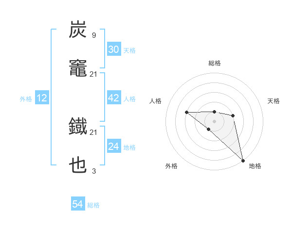 炭竈 鐡也さんの総格は54画の1点!