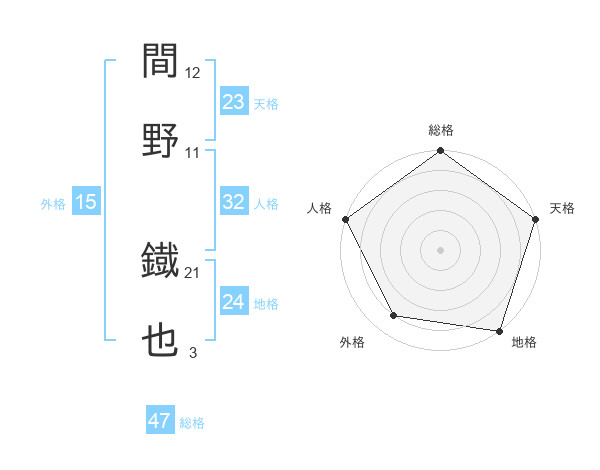 間野 鐡也さんの総格は47画の5点!