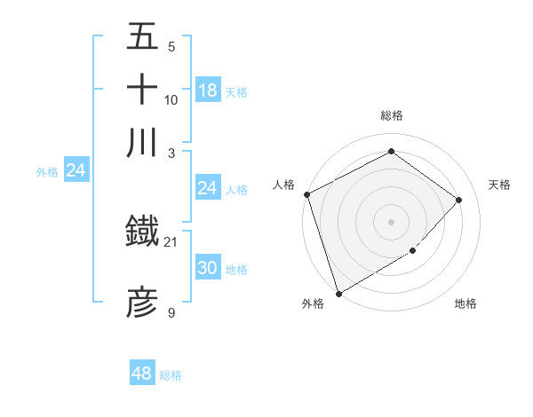 五十川 鐡彦さんの総格は48画の4点!