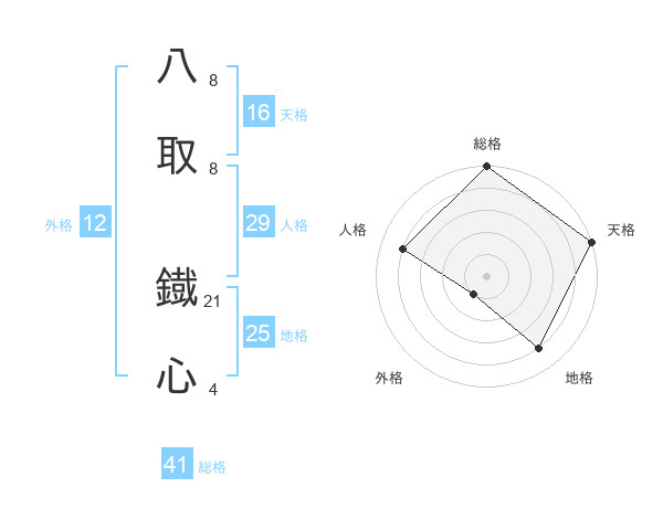 八取 鐡心さんの総格は41画の5点!