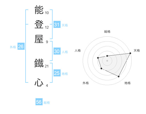 能登屋 鐡心さんを姓名の画数から五運を鑑定
