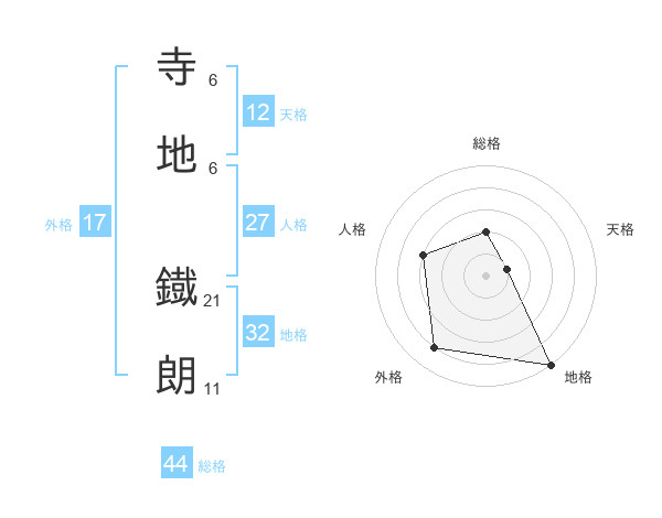 寺地 鐡朗さんの総格は44画の2点!