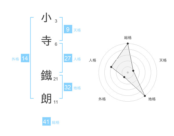 小寺 鐡朗さんを姓名の画数から五運を鑑定