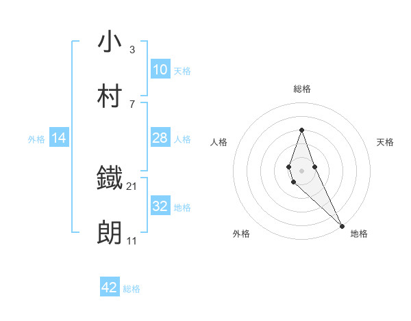 小村 鐡朗さんの総格は42画の3点!