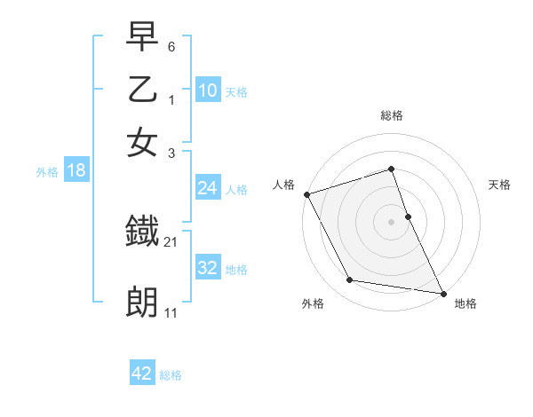 早乙女 鐡朗さんを姓名の画数から五運を鑑定