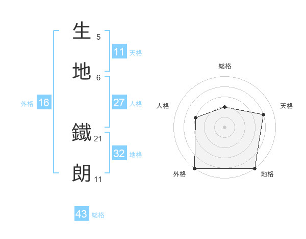 生地 鐡朗さんを姓名の画数から五運を鑑定