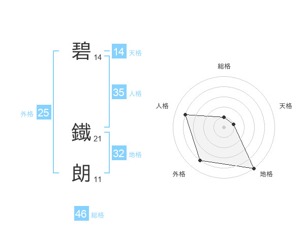 碧 鐡朗さんを姓名の画数から五運を鑑定