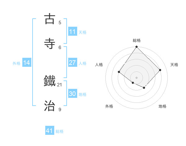 古寺 鐡治さんの総格は41画の5点!
