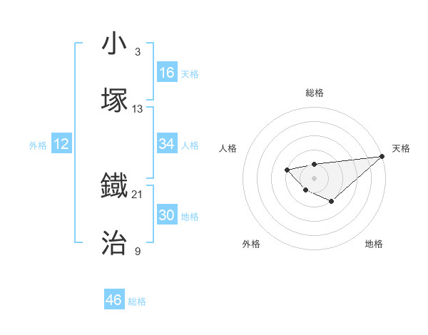 小塚 鐡治さんの総格は46画の1点!