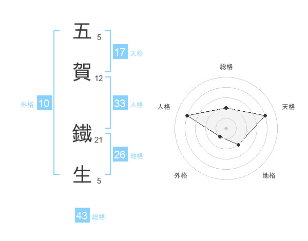五賀 鐡生さんの天格は17画の4点!