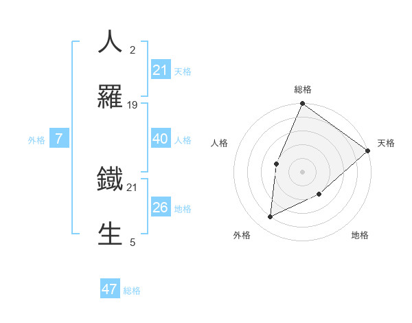 人羅 鐡生さんの総格は47画の5点!