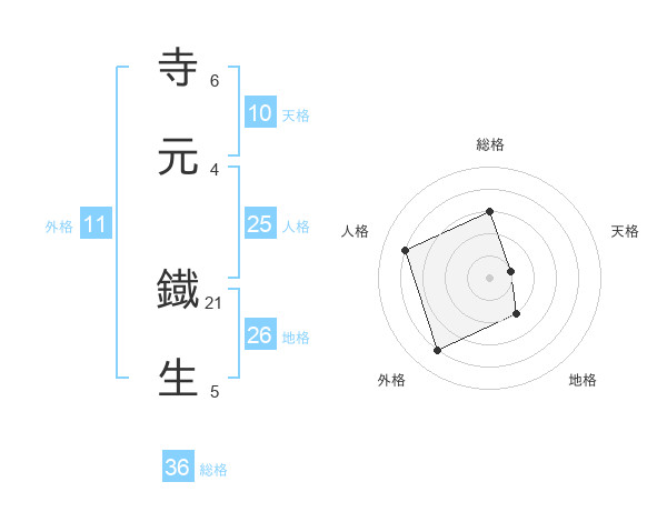 寺元 鐡生さんの地格は26画の2点!