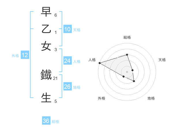 早乙女 鐡生さんの地格は26画の2点!