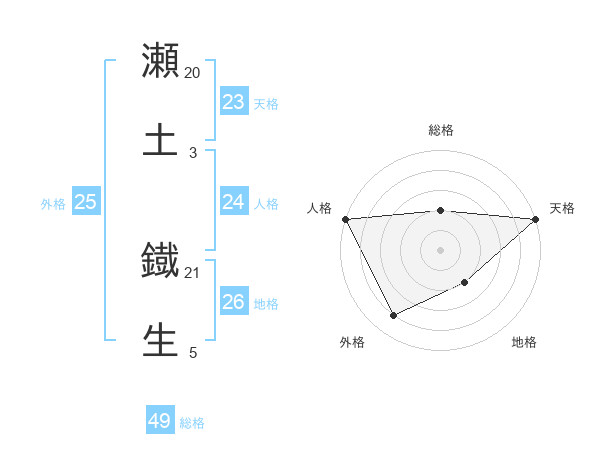 瀬土 鐡生さんを姓名の画数から五運を鑑定