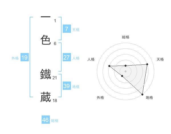 一色 鐡蔵さんを姓名の画数から五運を鑑定