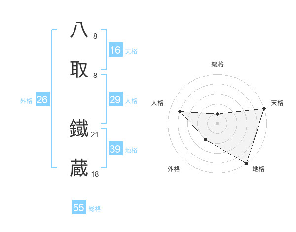 八取 鐡蔵さんを姓名の画数から五運を鑑定