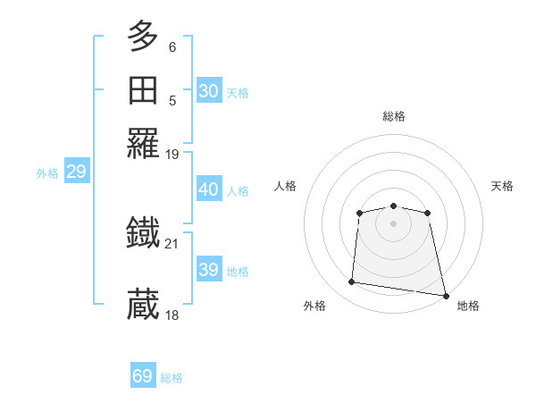 多田羅 鐡蔵さんを姓名の画数から五運を鑑定
