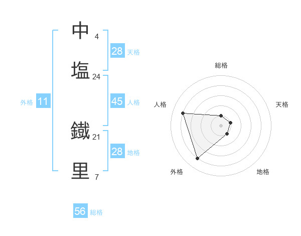 中塩 鐡里さんを姓名の画数から五運を鑑定