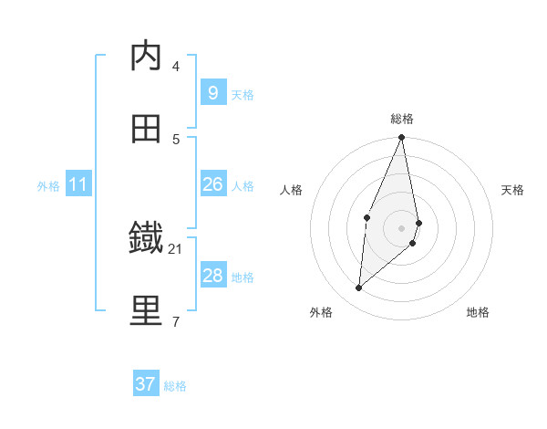内田 鐡里さんの総格は37画の5点!