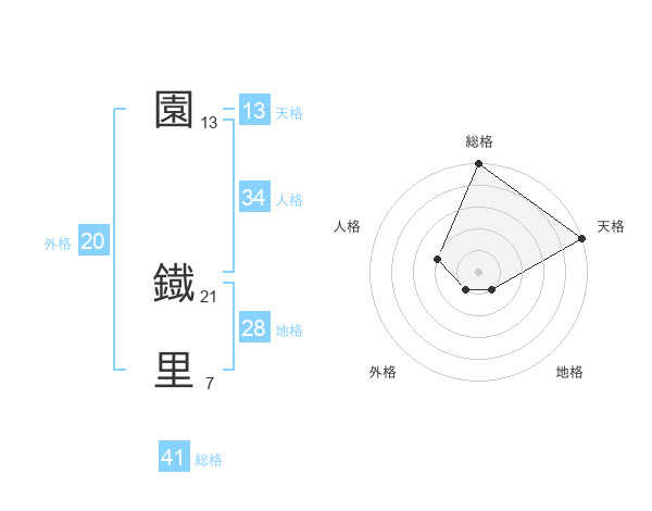園 鐡里さんの天格は13画の5点!
