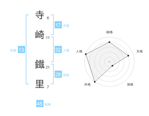 寺崎 鐡里さんの外格は13画の5点!