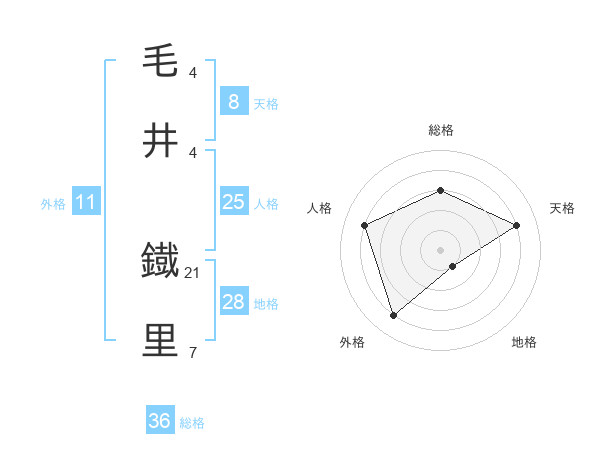 毛井 鐡里さんを姓名の画数から五運を鑑定