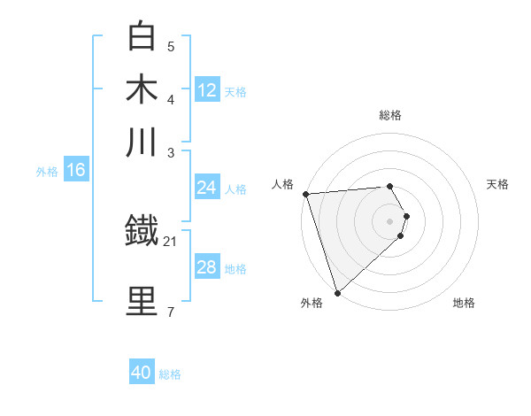 白木川 鐡里さんの外格は16画の5点!