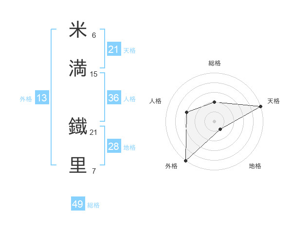 米満 鐡里さんの天格は21画の5点!