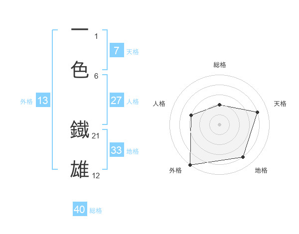 一色 鐡雄さんを姓名の画数から五運を鑑定
