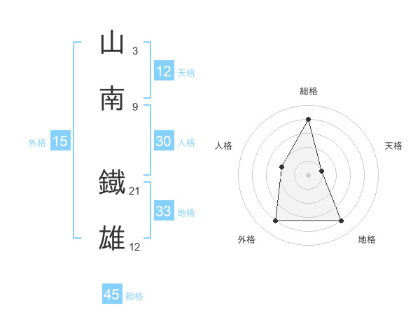 山南 鐡雄さんを姓名の画数から五運を鑑定