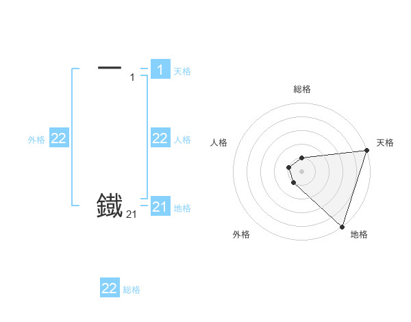 一 鐡さんの外格は22画の1点!