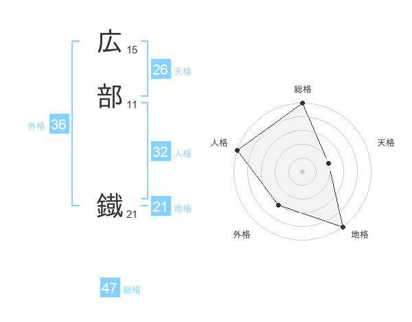 広部 鐡さんの総格は47画の5点!