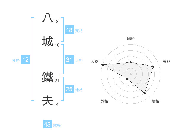 八城 鐵夫さんの天格は18画の4点!