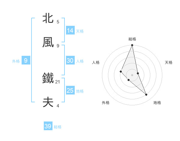 北風 鐵夫さんを姓名の画数から五運を鑑定