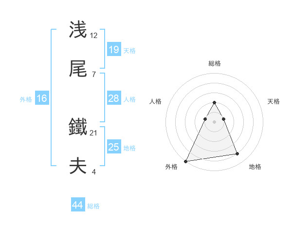 浅尾 鐵夫さんの天格は19画の1点!