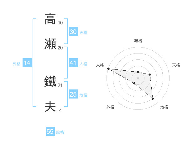 高瀬 鐵夫さんの地格は25画の4点!