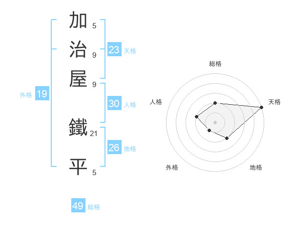 加治屋 鐵平さんを姓名の画数から五運を鑑定