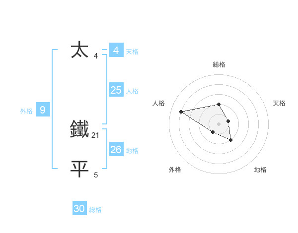 太 鐵平さんの総格は30画の2点!