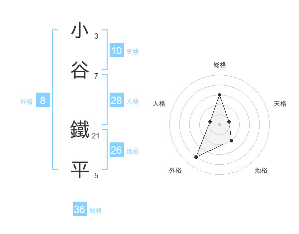 小谷 鐵平さんの総格は36画の3点!