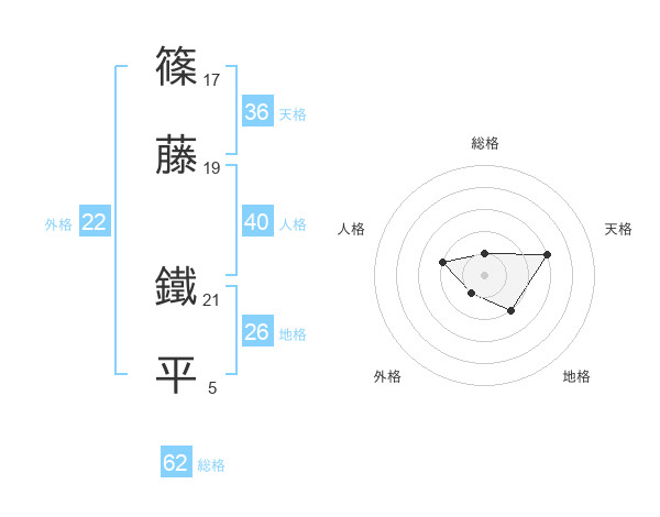 篠藤 鐵平さんを姓名の画数から五運を鑑定
