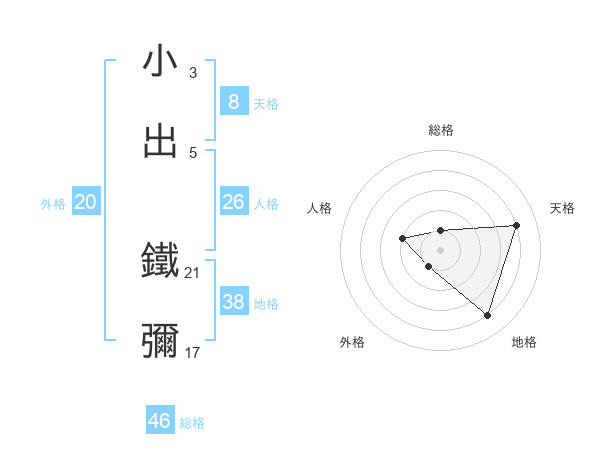 小出 鐵彌さんの地格は38画の4点!