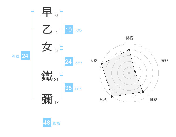 早乙女 鐵彌さんの外格は24画の5点!