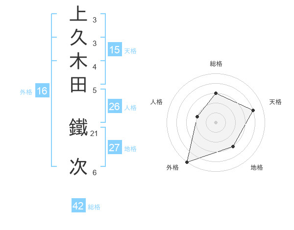 上久木田 鐵次さんの外格は16画の5点!