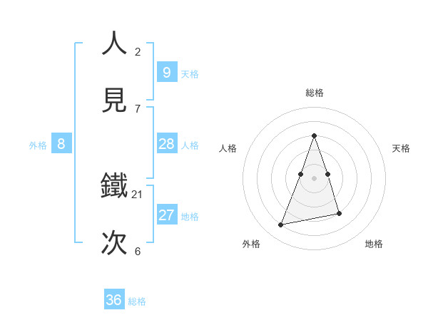 人見 鐵次さんの地格は27画の3点!