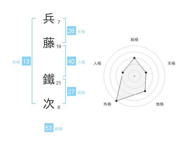 兵藤 鐵次さんを姓名の画数から五運を鑑定