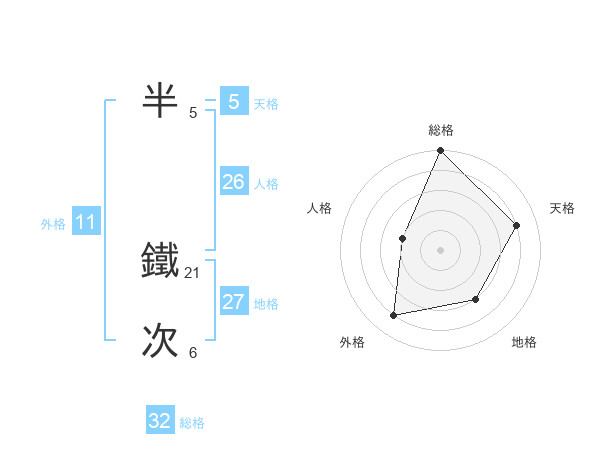 半 鐵次さんの総格は32画の5点!