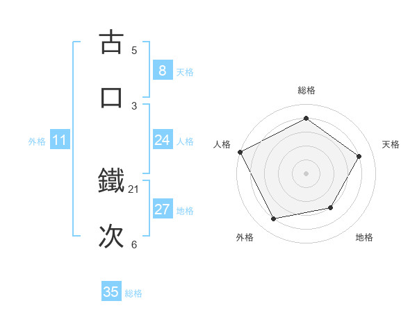 古口 鐵次さんを姓名の画数から五運を鑑定